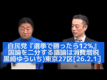 自民『選挙で勝ったら12%』国論を二分する議論は消費増税(お漏らし候補者:黒崎ゆういち)東京27区〈中野区、杉並区〉