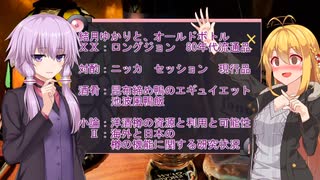 結月ゆかりと、オールドボトル ⅩⅩ:ロングジョン 90年代流通品 対酌:ニッカ セッション 現行品 酒肴:昆布締め鴨のエギュイエット 池波風鴨飯 小論:海外と日本の樽の機能に関する研究状況