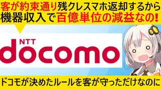 ドコモ「客がルール通り残クレスマホを返すから大幅減益です…」→ドコモのルールに従ったのにドコモが困って草