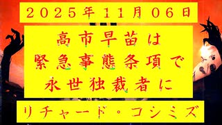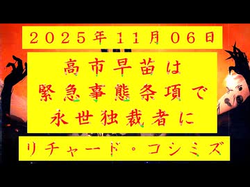 ◐「 リチャード・コシミズ :『 高市早苗 』は、『 緊急事態条項 』で『 永世独裁者 』になろうとしている 」