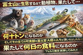 富士山に生息する全ての動植物。 果たして。 何十トンになるのか そしてその全ての可食部を富士宮の人々が頂いたとしたら、 果たして何日の食料になるのかフェルミ推定試算してみた