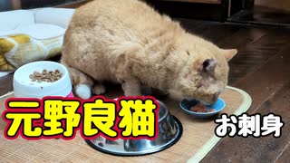 【元野良猫】初めての お刺身