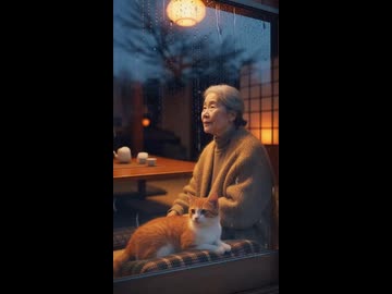 猫 雨の音。