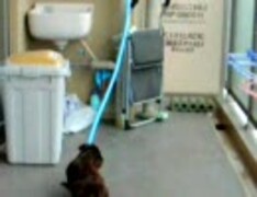 ベランダでホースと遊ぶエルメス