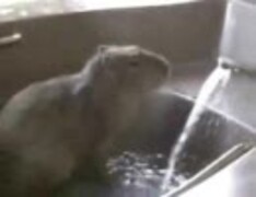 気持ちよさそうにお風呂に入るカピバラさん