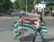 ロシアによる独立承認を祝うアブハジアの人々