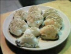 しいたけに海老と鱈と鶏肉を載せて蒸してみた【料理】