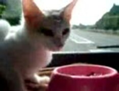 ヌコモコ動画#12 時速100kmで食べる猫