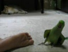 踊るインコに寝るワンコ(7月4日)