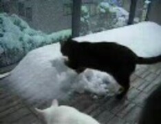 雪かきするねこ