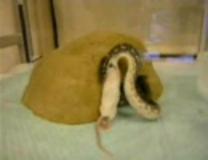 ネズミを丸呑みするヘビ