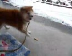 犬vsガム。柴犬かも。ポメラニアンかも。