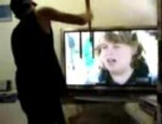 バットで叩いてプラズマテレビを修理する人