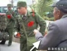 中国・人民解放軍の新兵にたかる乞食
