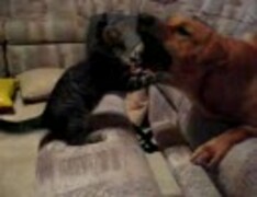 犬が子猫にボコボコされる