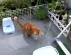 水遊びするネコ
