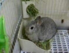 新しい牧草入れとうさぎ