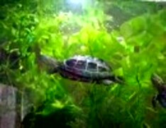 クサガメのちび太とビビリンのケンカ