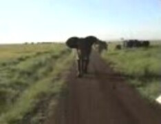 怒った象がサファリバス目掛けて突進