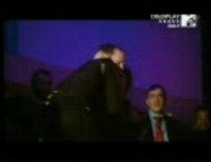 抱き合うクリス・マーティンとノエル(MTVにて)