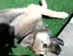 人工芝がうれしい犬