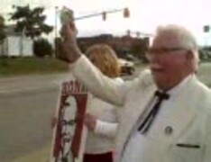 ヒッチハイクをするカーネルおじさん