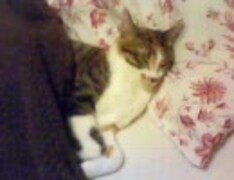 ゆづ 布団で枕を使って寝ています。 【猫】