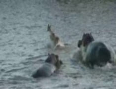 カバがインパラを襲う