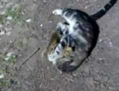 猫が愛しげにリスを抱く。