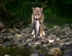 狼、川で鮭をとる