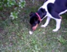 犬がネズミを追う、そして食べる