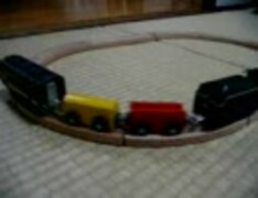 木製レールとプラレールの混成列車