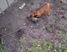犬、でかいリスを食べてます