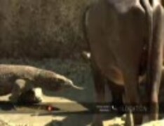 コモドオオトカゲと戦うシカ