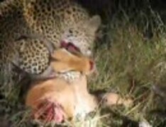 ヒョウがインパラを仕留めた