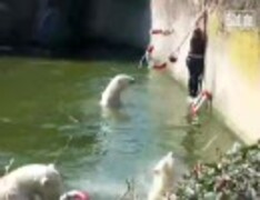 おばさん、シロクマのいるプールに転落