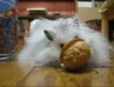 長毛ハムスター くるみを食べる