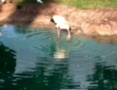 鳥がアヒルのヒナを食べている、動物園にて