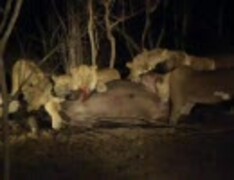 牝ライオンが雄バッファローの局部を食べる