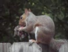 リスが美味そうに鳥を食べる