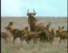 リカオンの群れがヌーを狩る