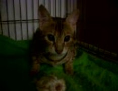 サーバルの子供が激しく唸りながら食べる