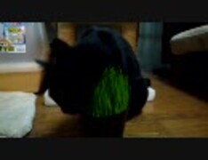 黒猫のレキ 猫草をムシャムシャ食べる動画