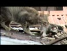 のら猫がネズミを捕まえた