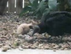 黒コンドルの親子がリス食べる