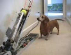 機械を使って遊ぶ犬