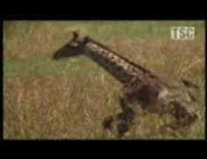 キリンの子を狙うハイエナ