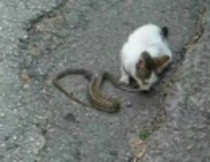 モンテネグロのこぬこがヘビ食べてる