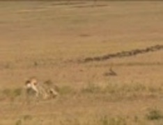 ジャッカルがガゼルの仔を狩る