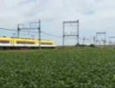 近鉄山田線を走る電車と枝豆畑